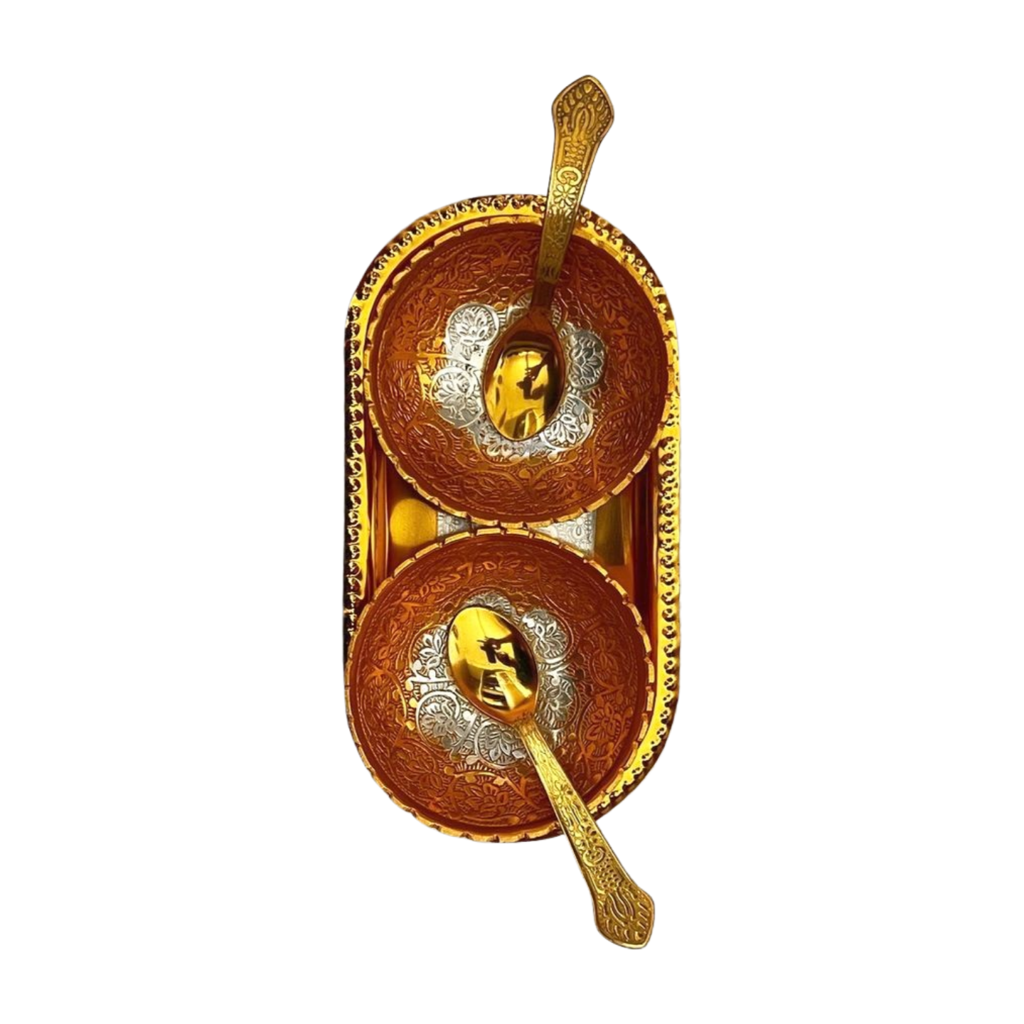 This stunning golden and silver coated bowl set with spiked edges is a perfect blend of tradition and elegance, making it a timeless addition to any home or a cherished gift for special occasions.
