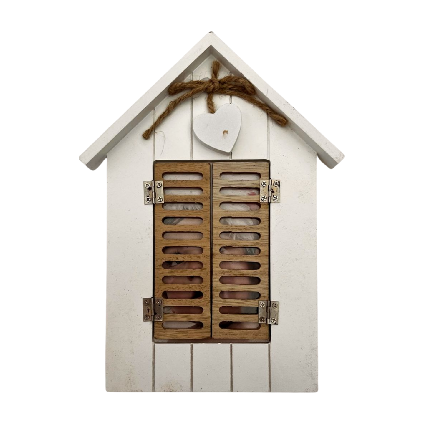 Bring warmth and charm to your memories with this beautifully crafted home-shaped photo frame. Designed with a cozy house silhouette, complete with shutter-style sides and a heart accent tied with rustic jute, it adds a touch of homeliness to any space. Perfect for holding a 4×6″ (10×15 cm) photograph, this frame is ideal for showcasing family portraits, childhood memories, or special moments. Available in three stylish colors—bright orange, classic white, and military green—it complements a variety of décor styles. A delightful decorative piece and a thoughtful gift for housewarmings, birthdays, or special occasions.