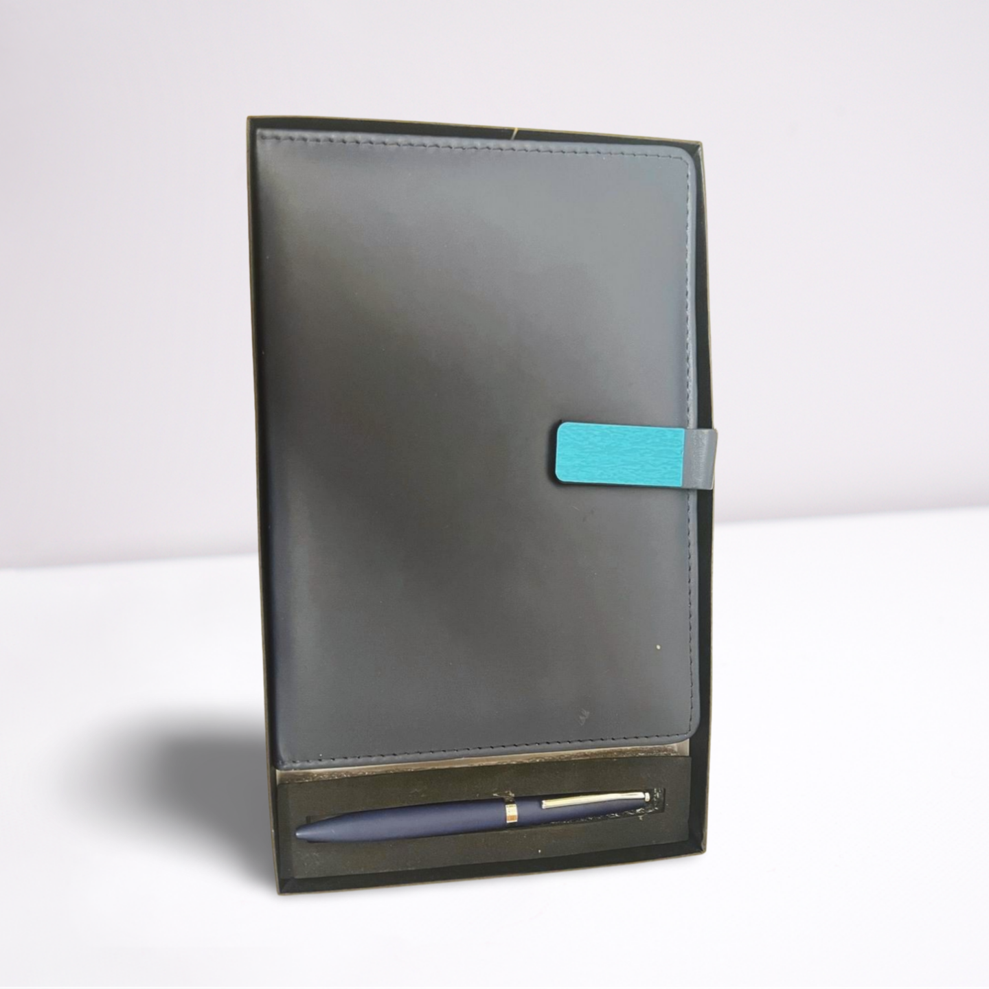 Make a lasting impression with this elegant Notebook & Pen Gift Set, perfect for professionals, students, and anyone who values organization and style. The set features a sleek, matte black notebook with a distinctive blue clasp, offering a modern touch to classic design. The high-quality notebook provides ample space for notes, ideas, and daily planning, while the matching blue pen ensures a smooth and comfortable writing experience. Presented in a sophisticated gift box, this set is ideal for corporate gifting, special occasions, or as a thoughtful gesture for colleagues and loved ones.