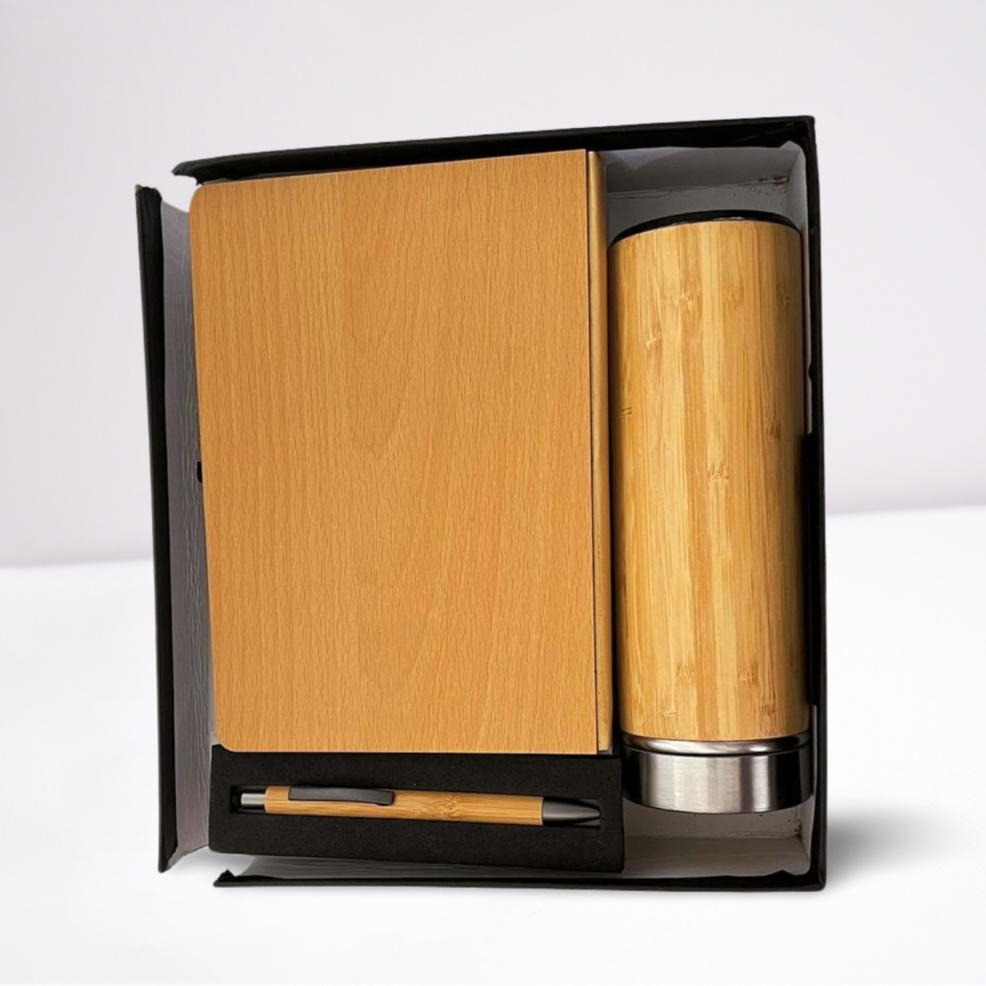 Embrace natural elegance with this Wooden Textured Gift Set, featuring a beautifully crafted water bottle, diary, and pen. The insulated water bottle boasts a striking wooden finish, combining style with practicality to keep beverages at the perfect temperature. The matching diary offers a smooth wooden-textured cover, providing a sophisticated space for notes, ideas, and daily planning. Completing the set is a sleek pen with wooden accents, ensuring a comfortable and refined writing experience. Presented in a premium gift box, this set is an ideal choice for professionals, students, or anyone who appreciates a blend of nature-inspired design and everyday functionality.